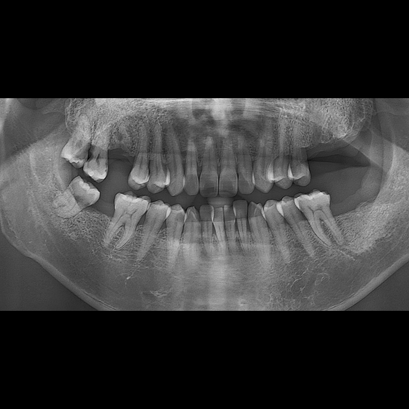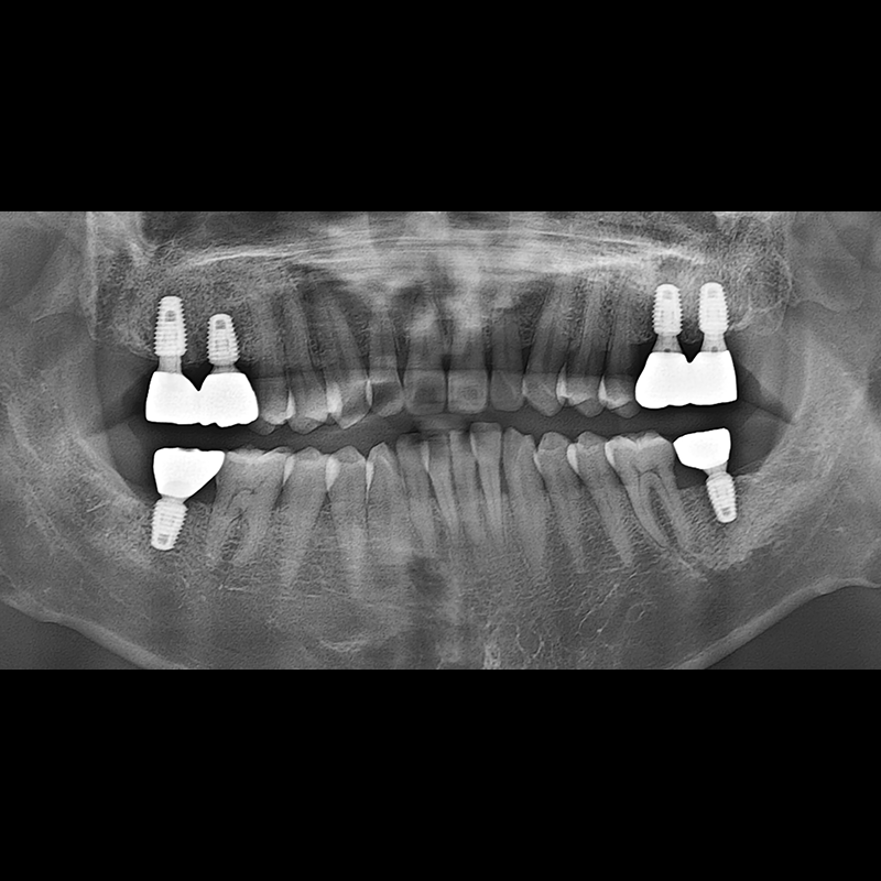 在缺失的牙齿部分和难以挽救的牙齿位置植入了种植牙。
