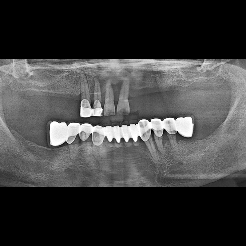 在缺失的牙齿部分和难以挽救的牙齿位置植入了种植牙。