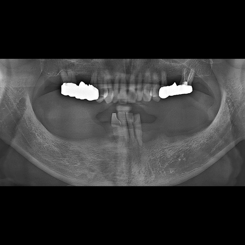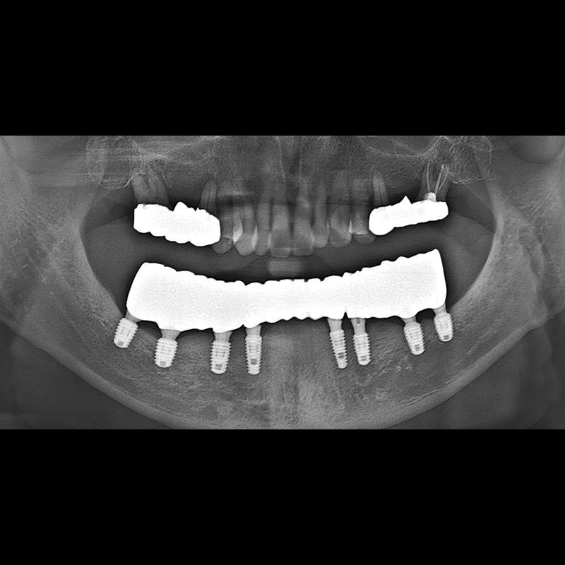 결손된 치아 부분과 살리기 힘든 치아 위치에 임플란트를 식립하였습니다.