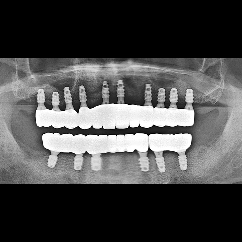 결손된 치아 부분과 살리기 힘든 치아 위치에 임플란트를 식립하였습니다.