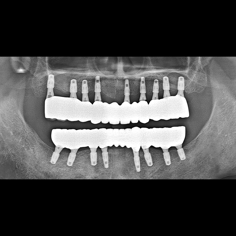결손된 치아 부분과 살리기 힘든 치아 위치에 임플란트를 식립하였습니다.