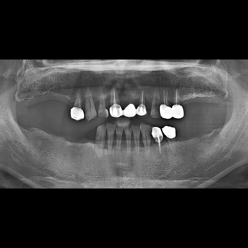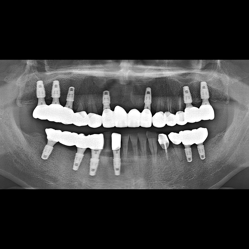 결손된 치아 부분과 살리기 힘든 치아 위치에 임플란트를 식립하였습니다.