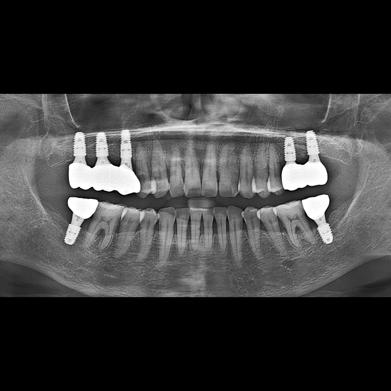 결손된 치아 부분과 살리기 힘든 치아 위치에 임플란트를 식립하였습니다.