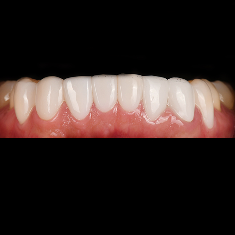既存の着色された歯に最小削除/無削除ルシネイトを付着して細かくきれいに施術しました。