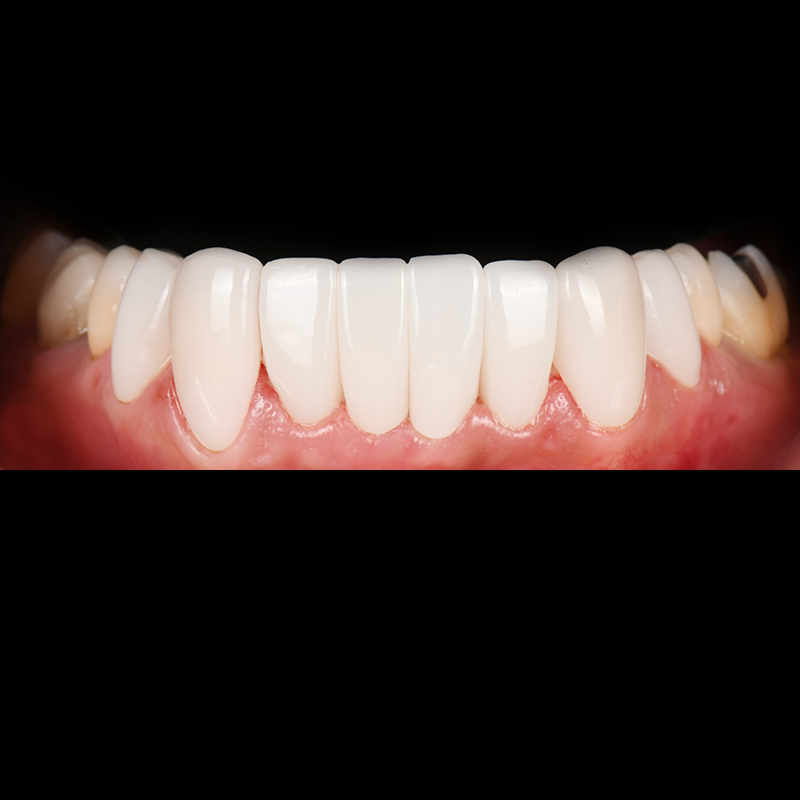 歯の着色や歯並びの乱れを最小限に抑える/無削除ルシネイトを付着してきれいに施術しました。