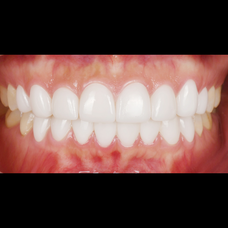 歯の着色治療のため、最小削除/無削除のルシネートを付着し、なめらかで自然な歯に仕上げました。