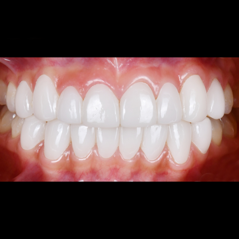 既存の着色された歯に最小削除/無削除ルシネイトを付着して細かくきれいに施術しました。