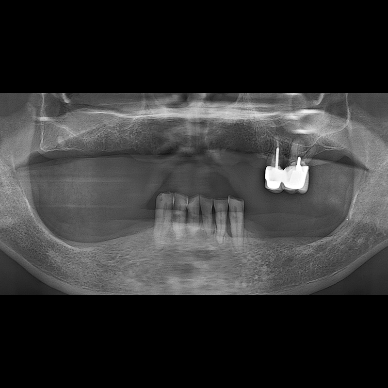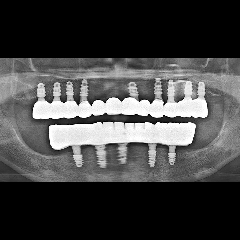 在缺失的牙齿部分和难以挽救的牙齿位置植入了种植牙。