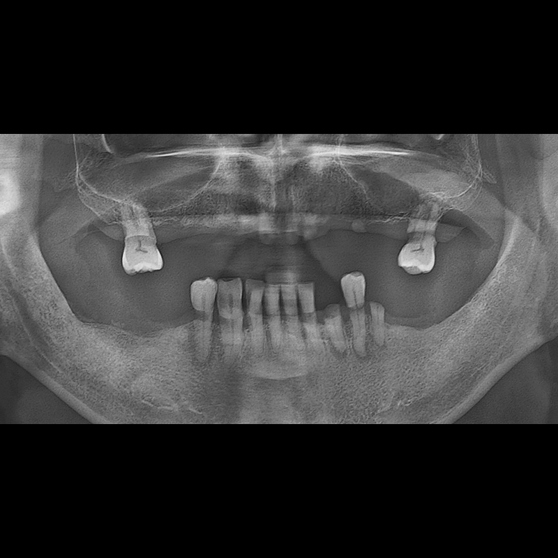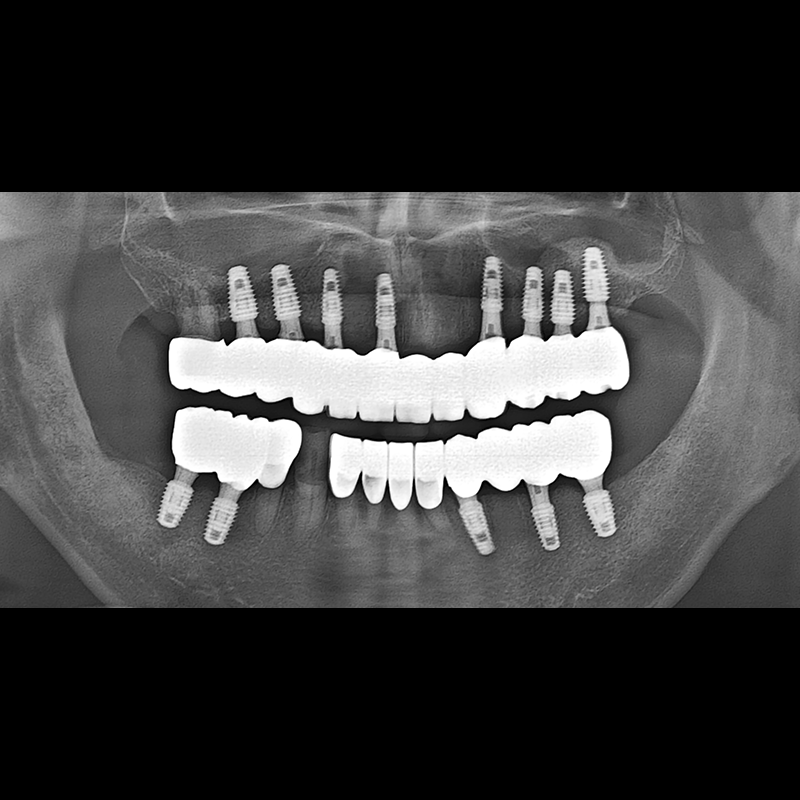 在缺失的牙齿部分和难以挽救的牙齿位置植入了种植牙。