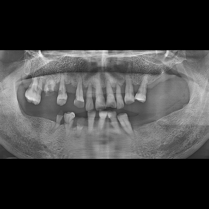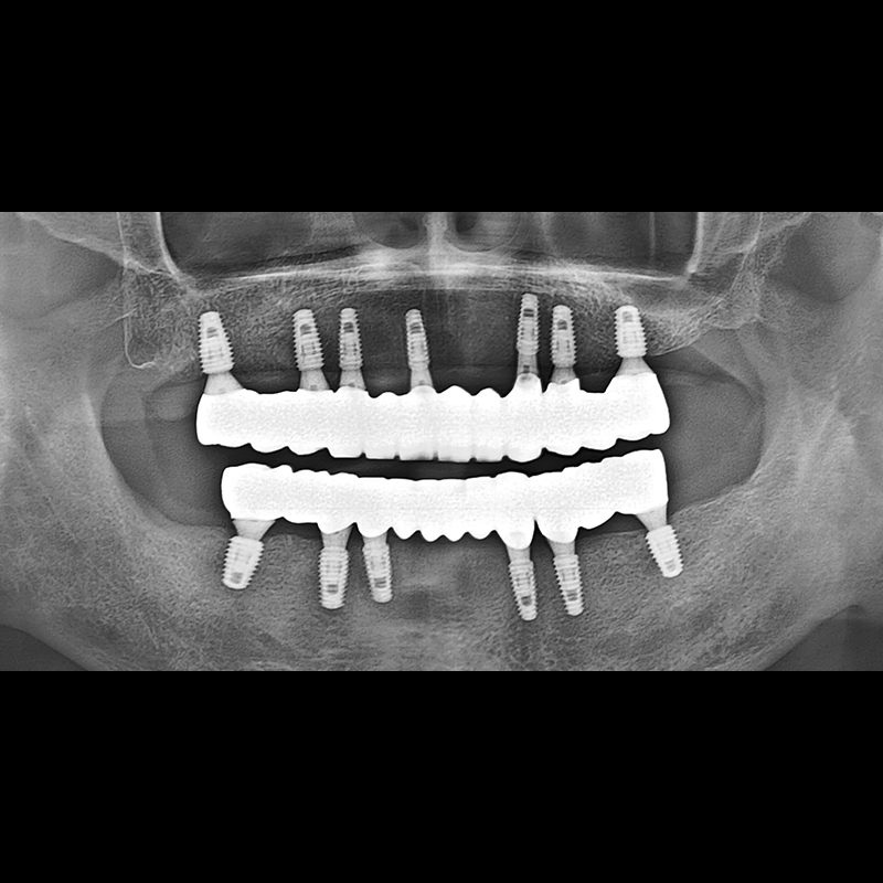 在缺失的牙齿部分和难以挽救的牙齿位置植入了种植牙。
