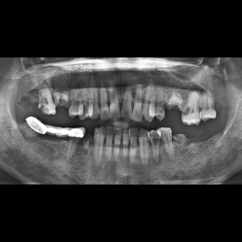 在缺失的牙齿部分和难以挽救的牙齿位置植入了种植牙。