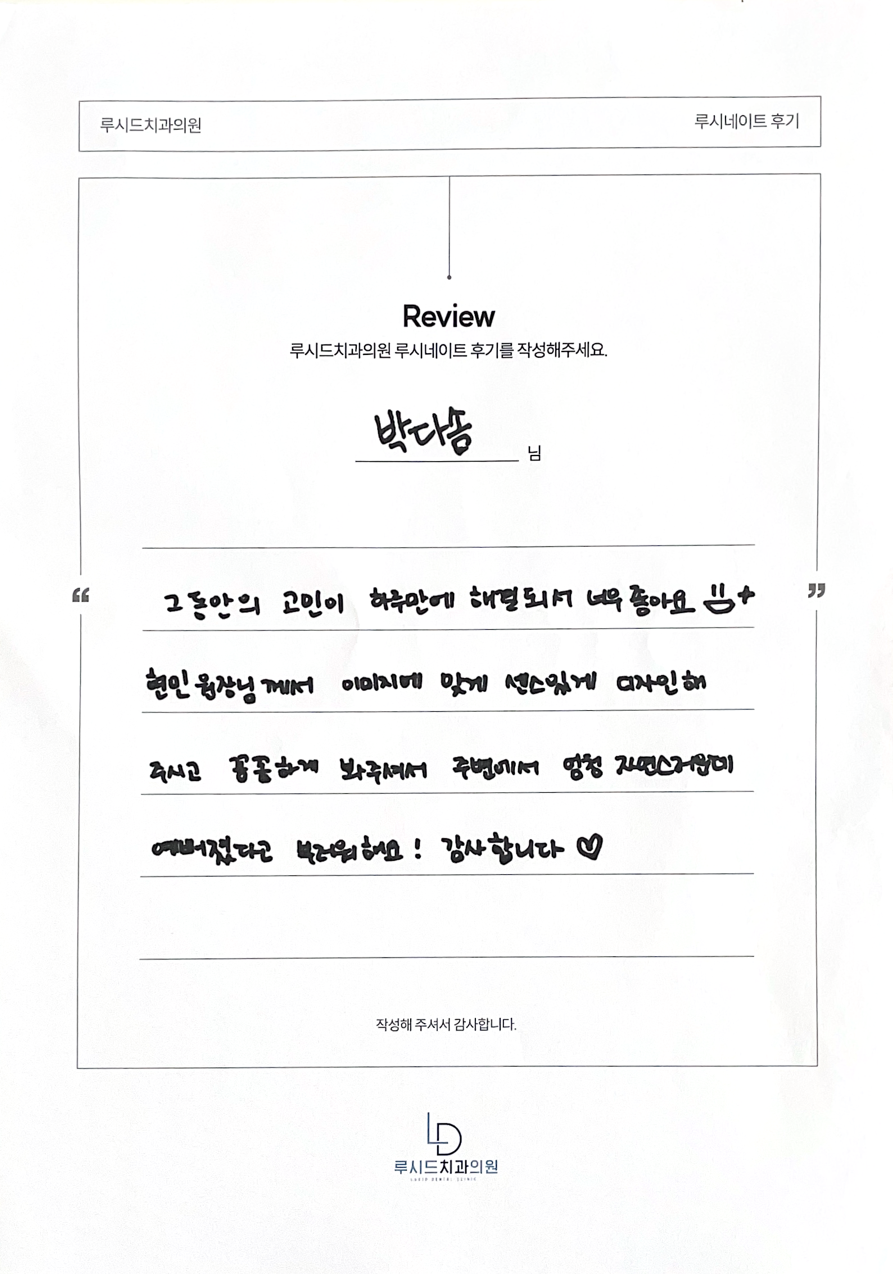 是朴多顺Lucid牙科Lucinate亲笔后记。