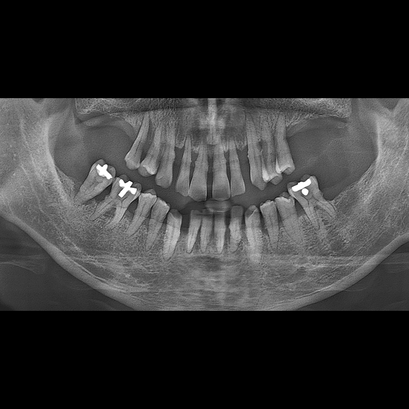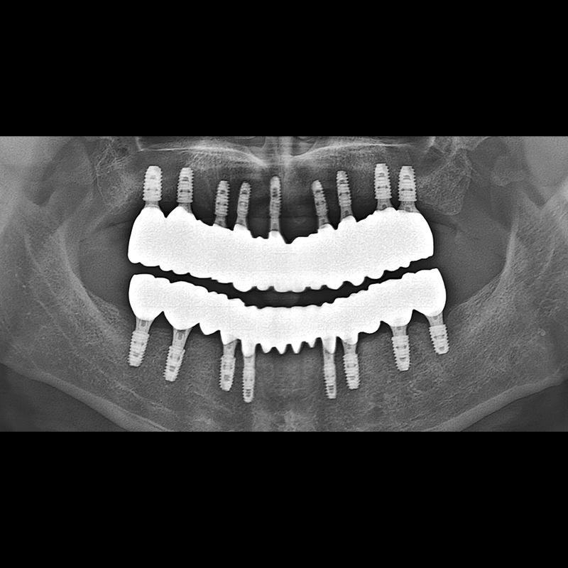 결손된 치아 부분과 살리기 힘든 치아 위치에 임플란트를 식립하였습니다.