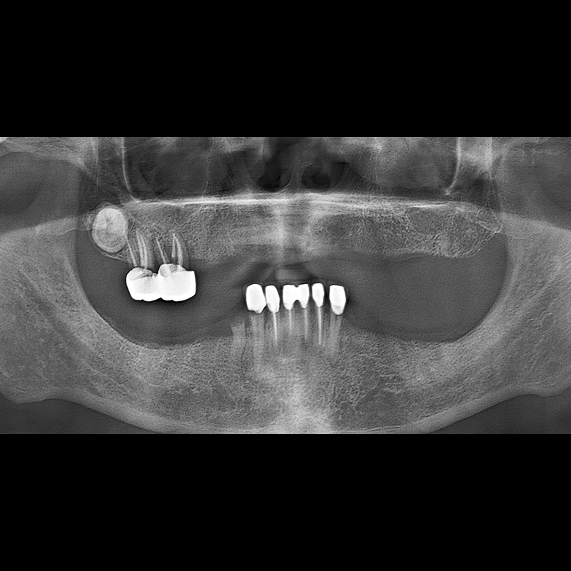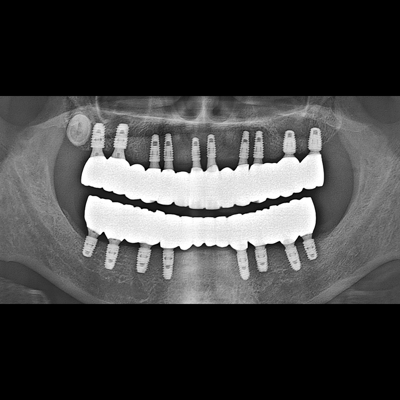 결손된 치아 부분과 살리기 힘든 치아 위치에 임플란트를 식립하였습니다.