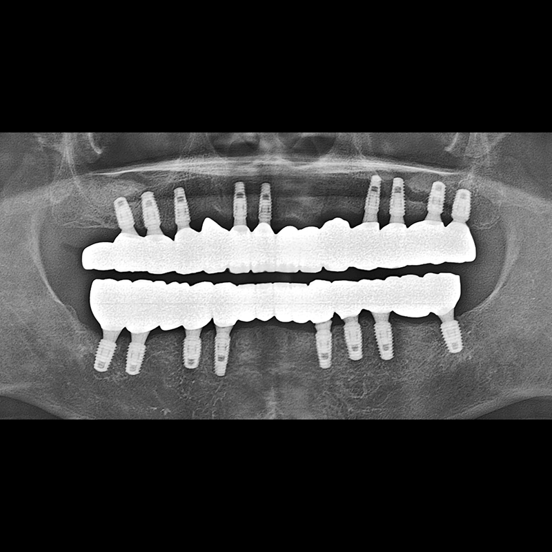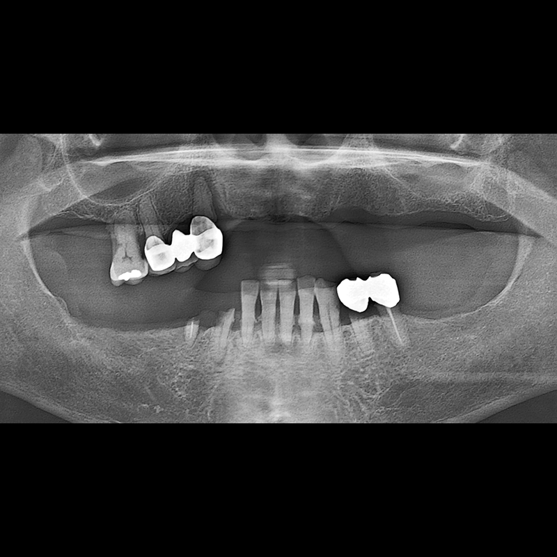 결손된 치아 부분과 살리기 힘든 치아 위치에 임플란트를 식립하였습니다.