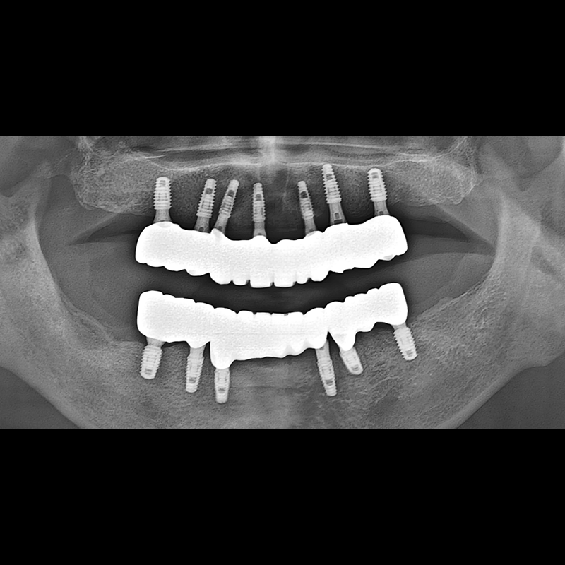 결손된 치아 부분과 살리기 힘든 치아 위치에 임플란트를 식립하였습니다.
