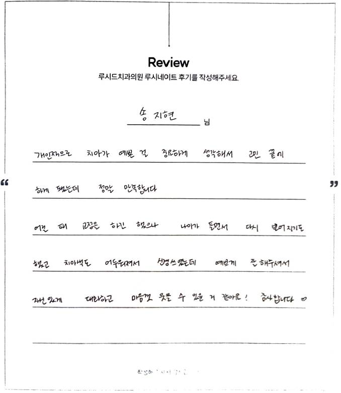 송지현님 루시드치과 루시네이트 자필 후기 입니다.