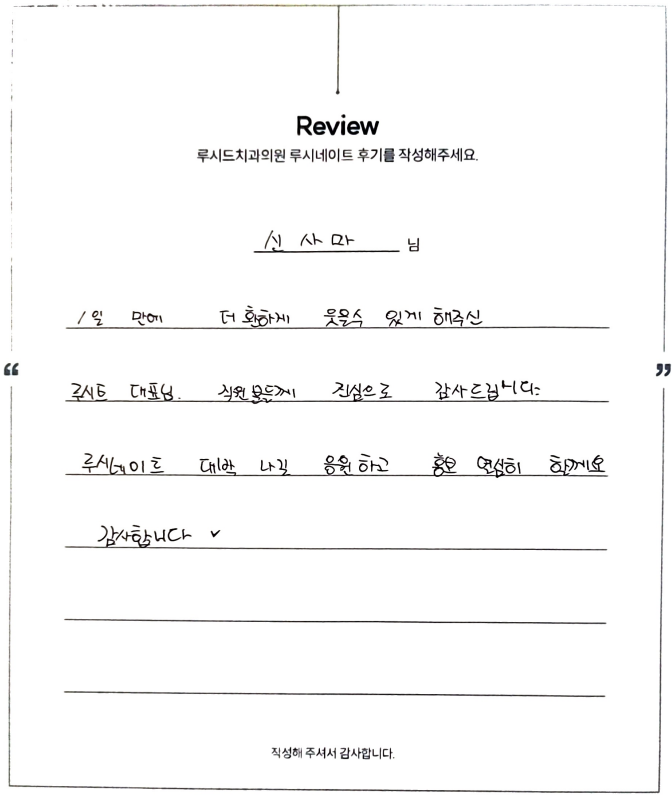 신사마님 루시드치과 루시네이트 자필 후기 입니다.