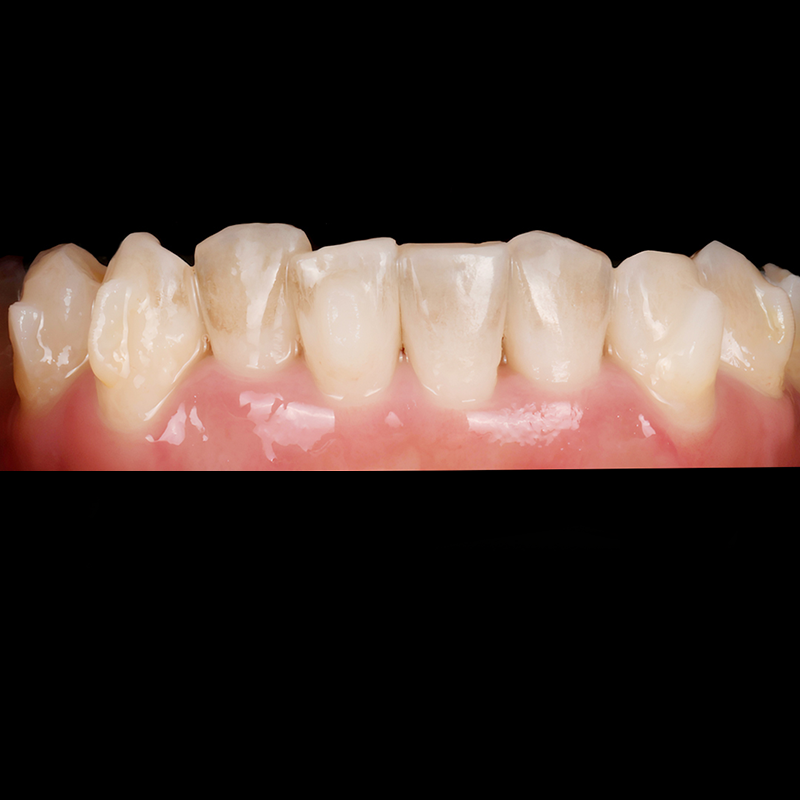 歯の着色や歯並びの乱れを最小限に抑える/無削除ルシネイトを付着してきれいに施術しました。