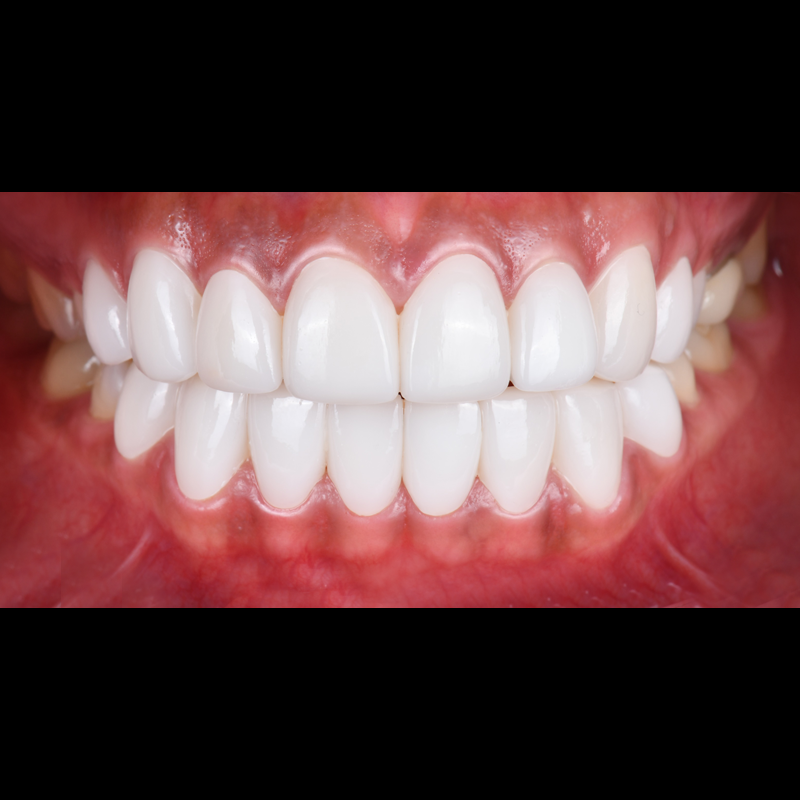 既存の着色された歯に最小削除/無削除ルシネイトを付着して細かくきれいに施術しました。