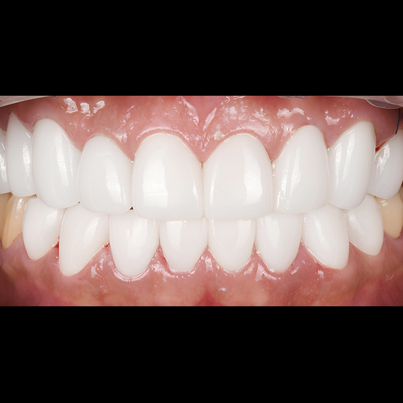 歯の着色治療のため、最小削除/無削除のルシネートを付着し、なめらかで自然な歯に仕上げました。