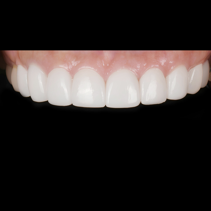 既存の着色された歯に最小削除/無削除ルシネイトを付着して細かくきれいに施術しました。