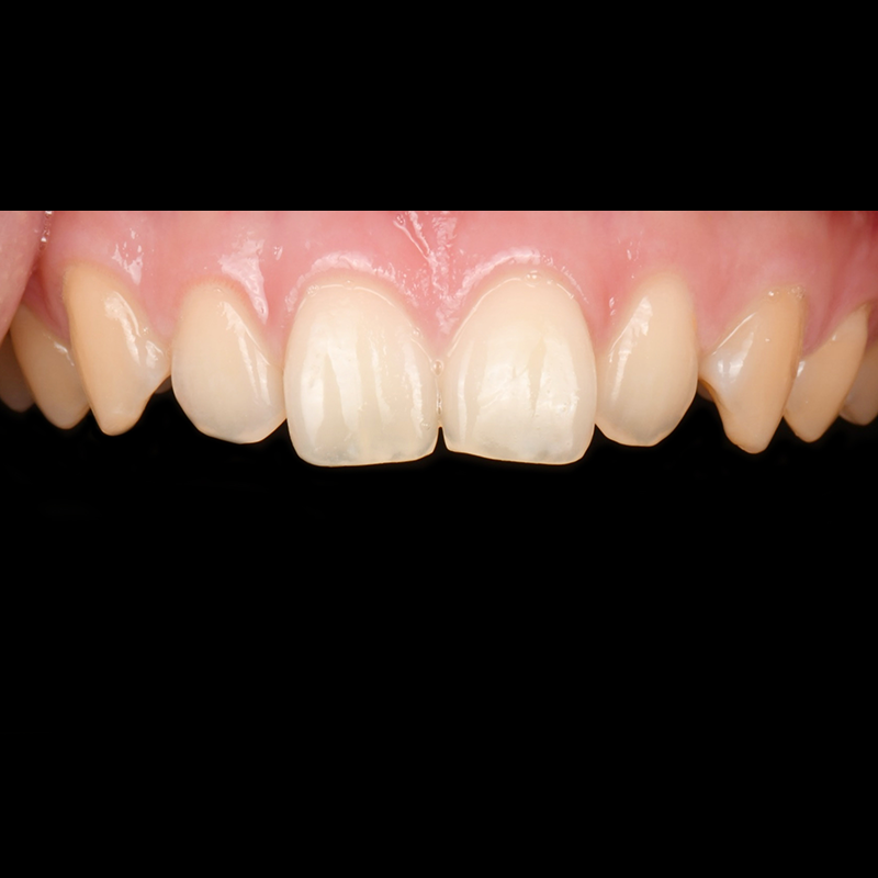 歯の着色や歯並びの乱れを最小限に抑える/無削除ルシネイトを付着してきれいに施術しました。