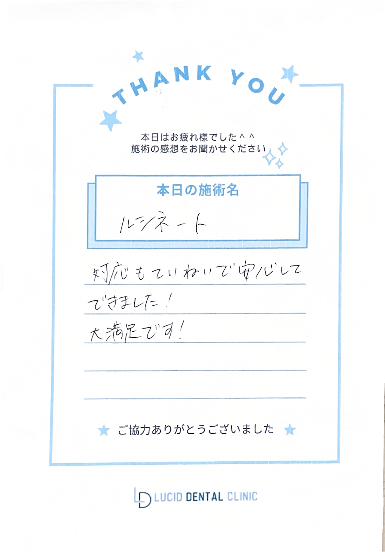 日本人のお客様の自筆レビュー 2025.06.24